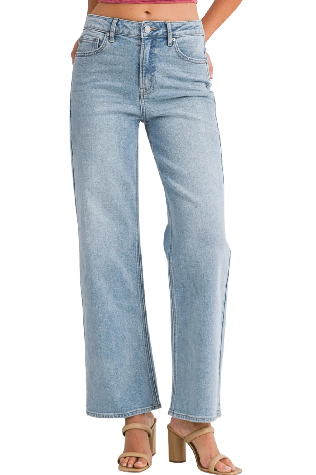 Look no further for the perfect straight leg denim! Our medium wash, high rise, straight leg jeans are the ultimate combination of style and comfort. Elevate any outfit with this versatile and flattering pair. Say goodbye to uncomfortable jeans and hello to effortless style.