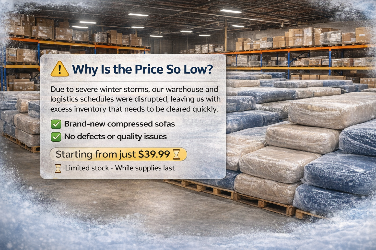 These are brand-new compressed sofas, previously priced at $1000+, with no defects or quality issues.