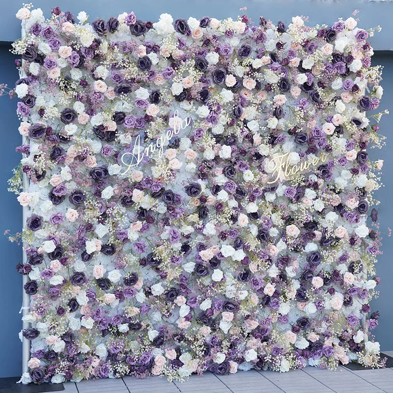 A7835 5D White Purple Wedding Backdrop Decor Cloth Curtain Roll Up Flower Wall