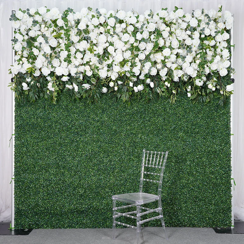 A7812 White Rose Roll Up Cloth Curtain Flower Wall Green Milan Turf Fabric Plant Wall