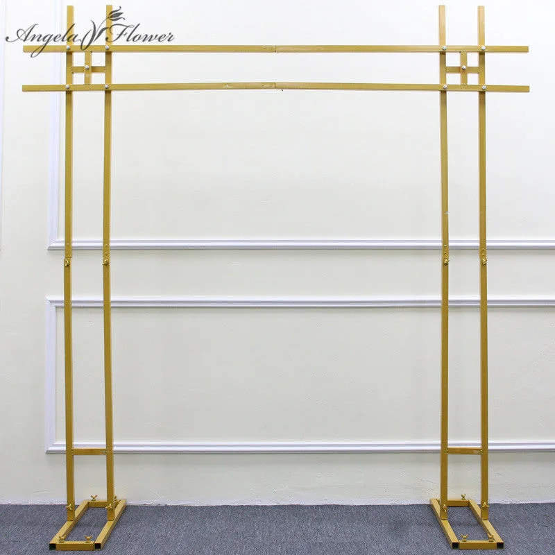 Gold 2M Stable Metal Double Tube Square Screen Add Hang Flower Wedding Backdrop Frame White Flower Stand Party Prop Floral Shelf A4965