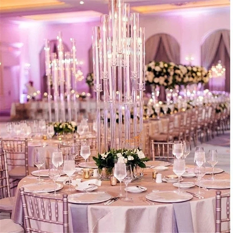 Angela Flower 2pcs/lot Acrylic Crystal Transparent Candle Holder Table Centerpieces Flower Stand A7463