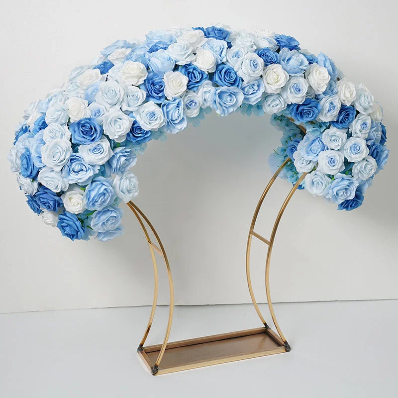 A7754 White roses dark blue floral arrangement Wedding table run floral row decorated