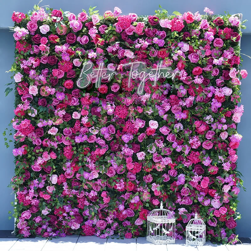 A7808 Red Purple Rose Peony Hydrangea Roll Up Cloth 5D Flower Wall Arrangement Wedding Backdrop Decor