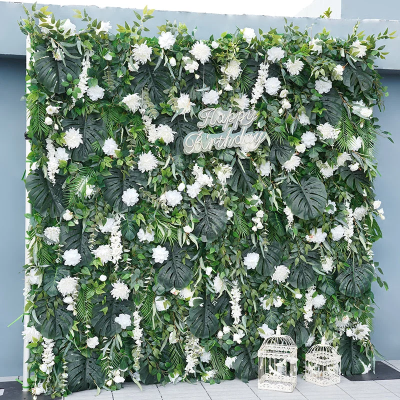 A7819 5D Green Turtle Leaf With White Flower Wedding Backdrop Decor Flower Wall