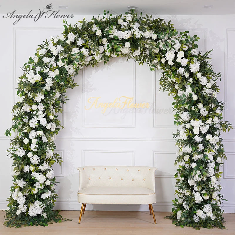 A7853 A4175 White Rose Green Leaves Flower Row Decor Wedding Backdrop Arch