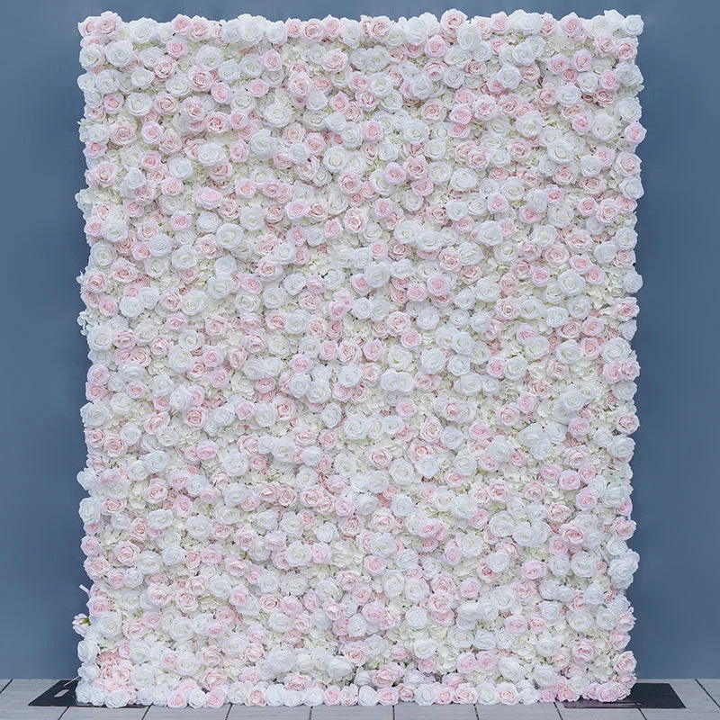 A8217 Pink White Rose Roll Up Cloth 5D Floral Wall Outdoor Wedding Backdrop
