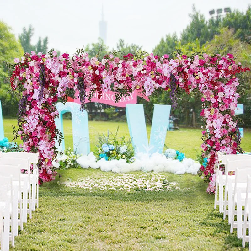 A8642 Pink Rose Orchid Hang Wisteria Flower Row Decor Wedding Backdrop Square Frame