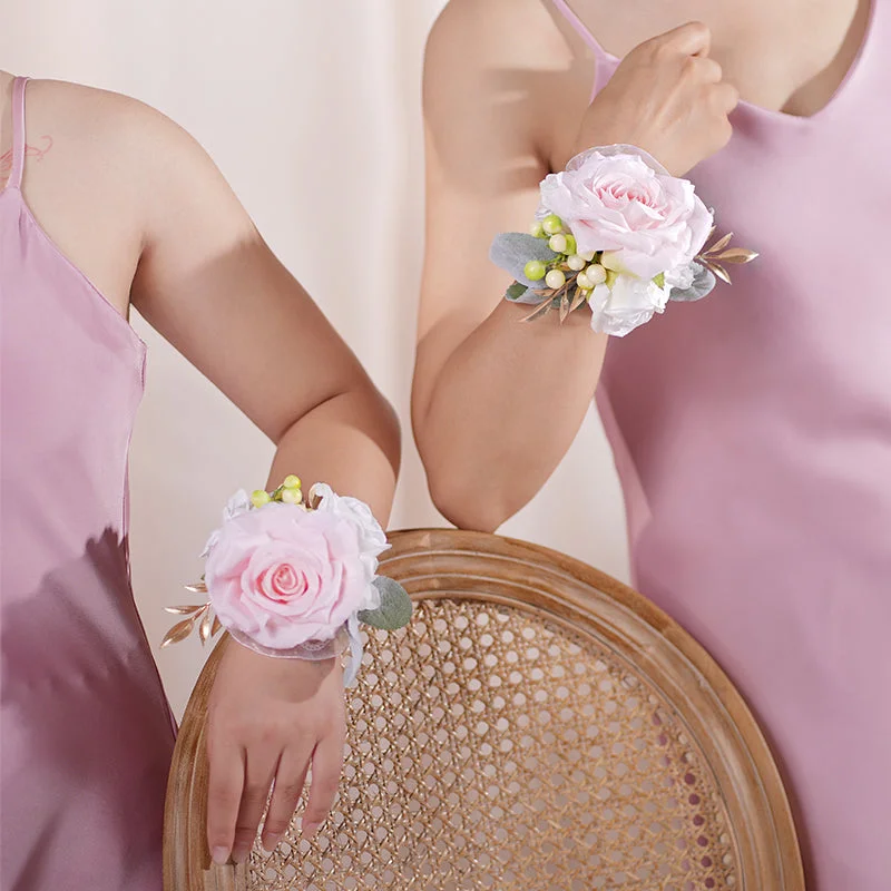 A864005 Pink White Ladies Bridesmaid Bridal Wrist Flowers Wedding Supplies
