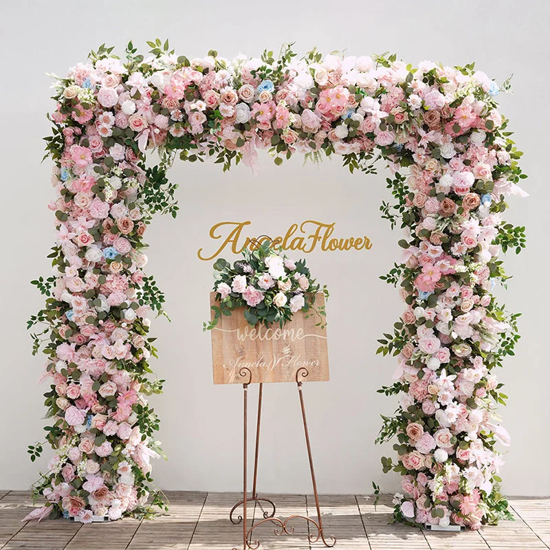 A864019 Pink White Series With Greenery Floral Arrangement Decor Wedding Backdrop Frame