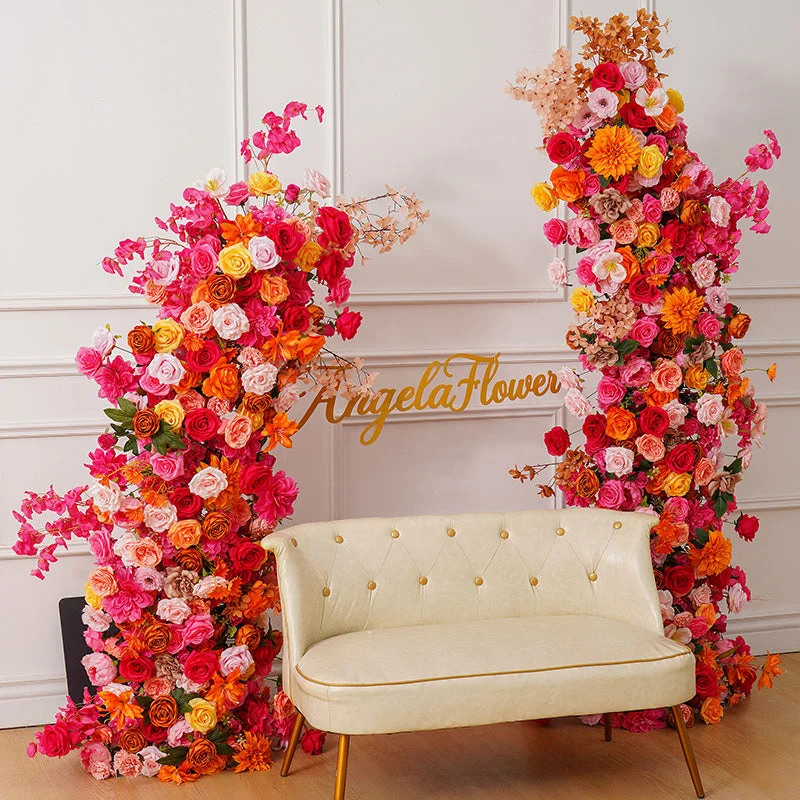 A8670 Orange Horn Arch Floral Arrangement Decor Wedding Event Props