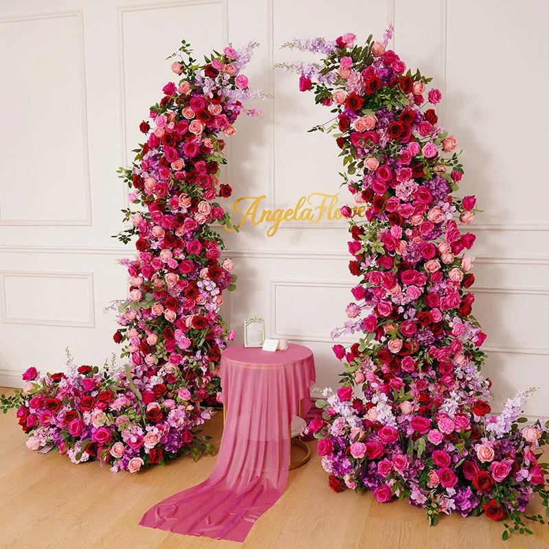 A8673 Hot Pink Rose Floral Arrangement Wedding Horn Arch Decor