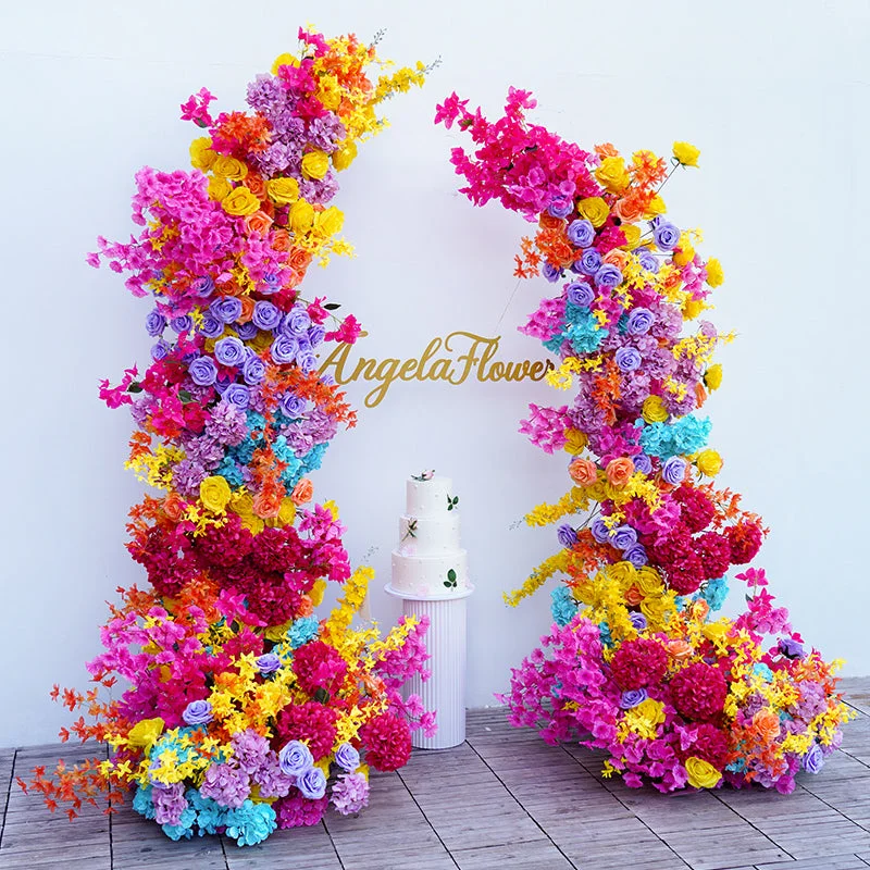 A8698 Colorful Rose Hydrangea Floral Arrangement Decor Horn Arch