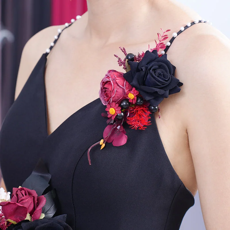 Angela Flower Black Burgundy Series Corsage Flower Bridal Wedding Party Supplies A865405