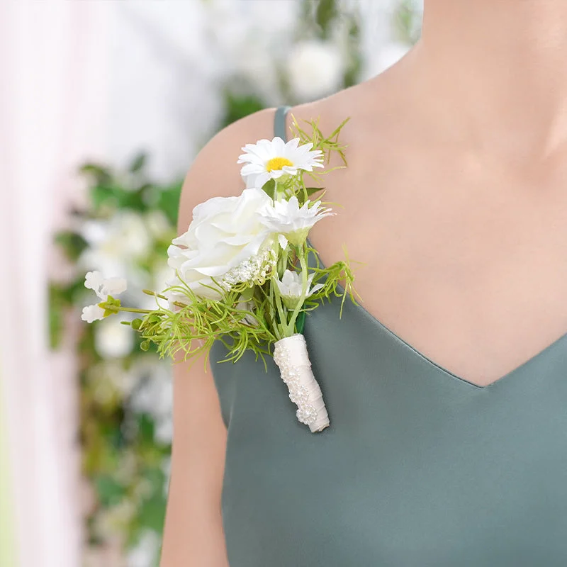 A869756 White Series Daisy Corsage Flower Bridal Bridegroom Wedding Event Supplies