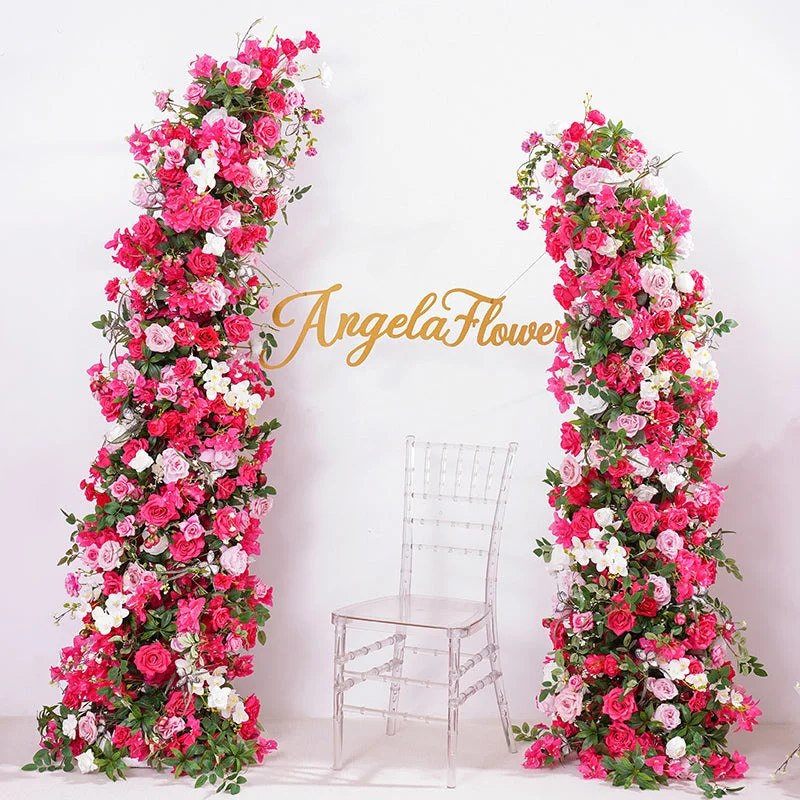 A866319 Hot Pink Series Rose Greenery Floral Arrangement Decor Horn Arch Frame Wedding Backdrop