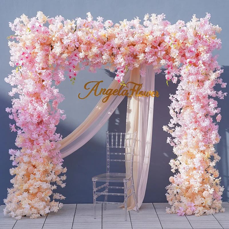 A8743 Champagne Pink Cherry Blossoms Orchid Wedding Backdrop Floral Arrangement