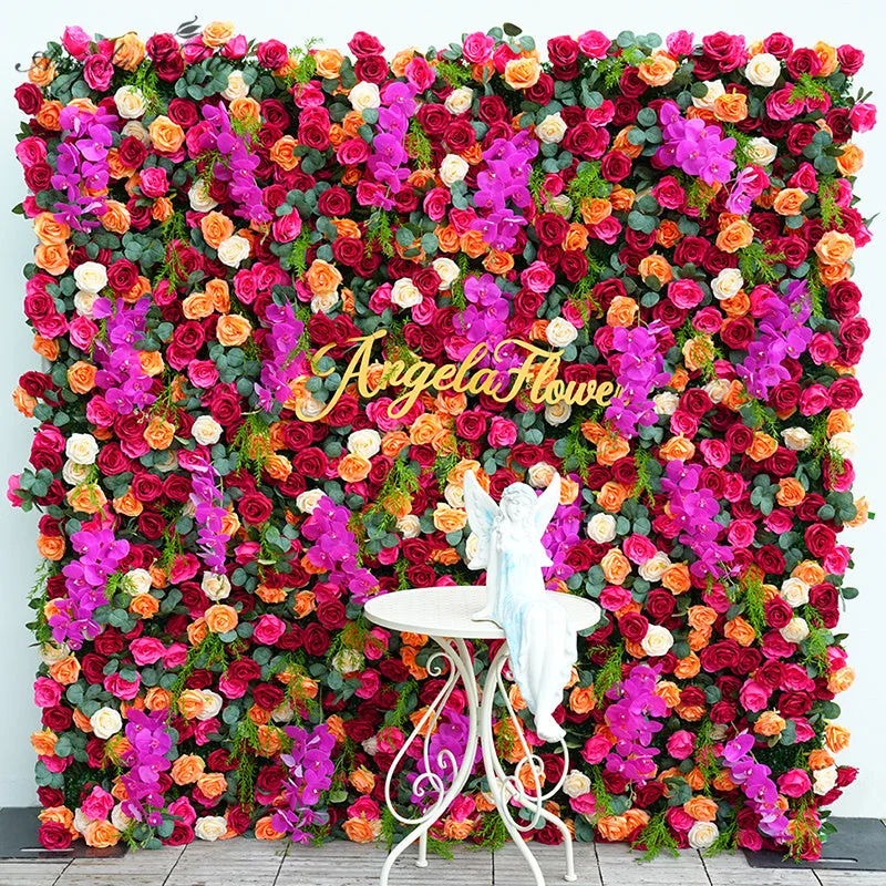 A8745 Orange Red Rose Orchid Fabric Cloth Base 5D Roll Up Curtain Flower Wall