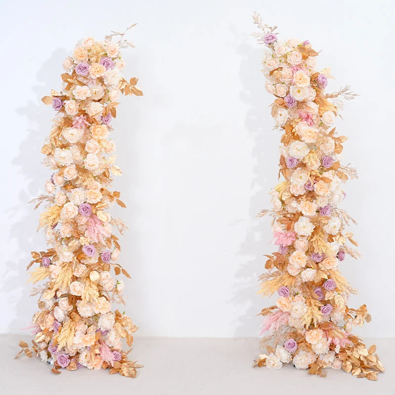A8741 Champagne Rose Gold Leaf Floral Arrangement Decor Wedding Horn Arch