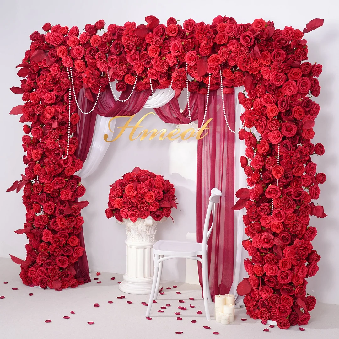 A875204 Red Flower Row Wedding Backdrop Arch Floral Arrangement