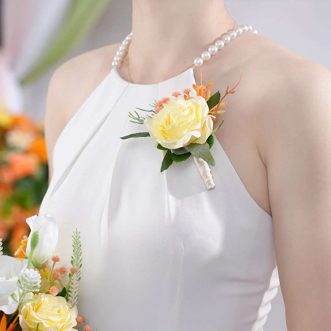 A8665056 Orange White Corsage Flower Wedding Bridal Groom Accessories