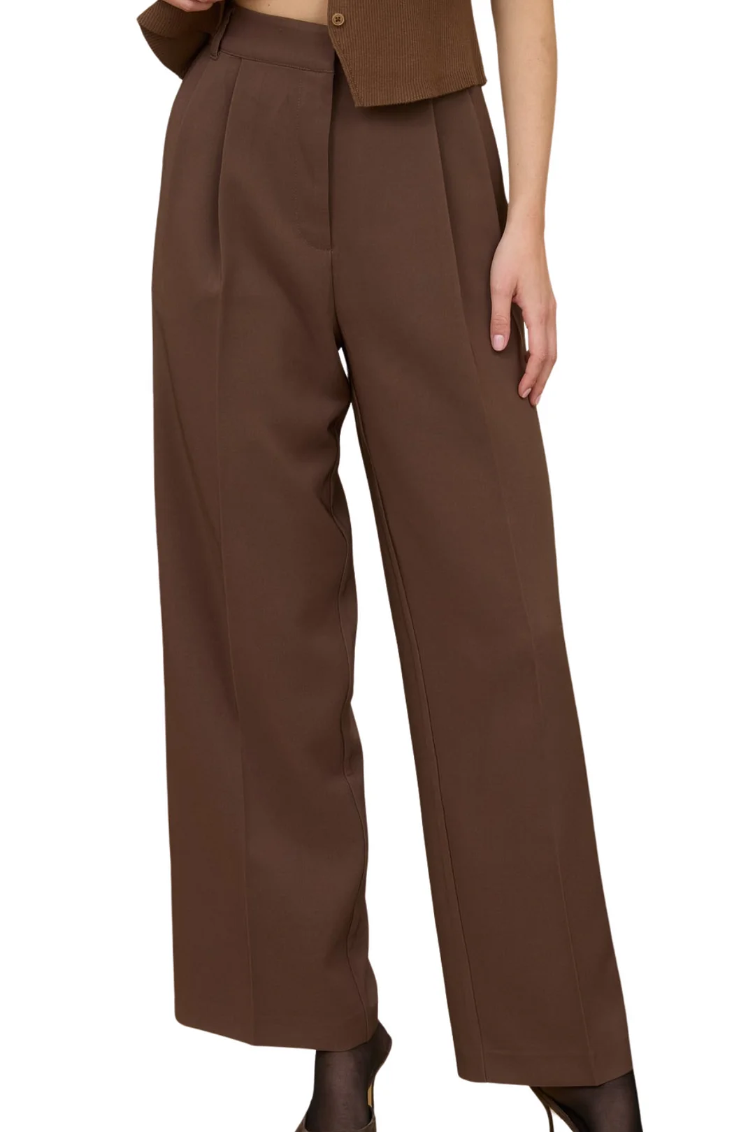 These high-waist wide leg dress pants combine elegance with comfort. Featuring front pleated details and a secure hook and bar closure, they offer a flattering fit that enhances your silhouette. Practical pockets add convenience, while the flowing wide legs provide freedom of movement and a sophisticated look perfect for any occasion. Elevate your wardrobe with these versatile, stylish pants designed to make an impression.