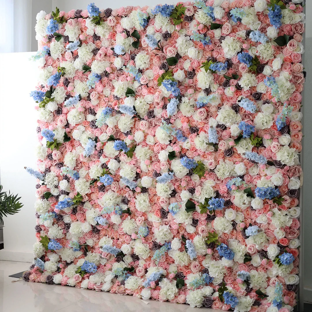 Roll Up Fabric Artificial Flower Wall Wedding Backdrop, Floral Party Decor, Event Photography-VF-128