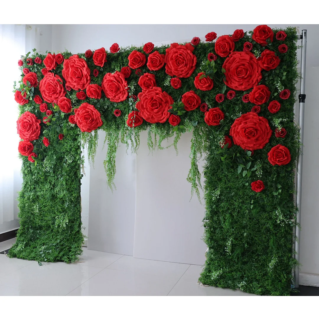 Roll Up Fabric Artificial Flower Wall Wedding Backdrop, Floral Party Decor, Event Photography-VF-318