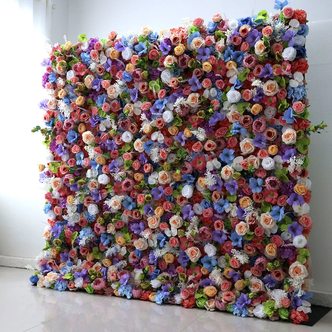 Roll Up Fabric Artificial Flower Wall Wedding Backdrop, Floral Party Decor, Event Photography-VF-328