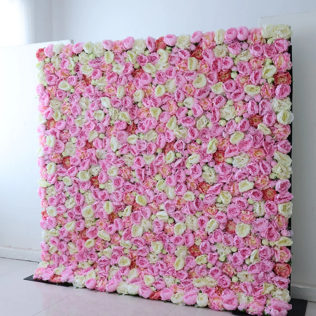 Roll Up Fabric Artificial Flower Wall Wedding Backdrop, Floral Party Decor, Event Photography-VF-347