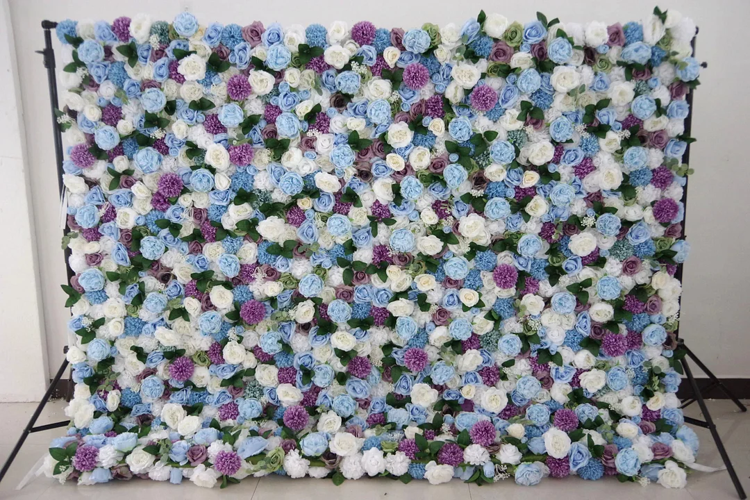 Roll Up Fabric Artificial Mix Purple White and Blue Flower Wall Wedding Backdrop, Floral Party Decor, Event Photography-VF-036