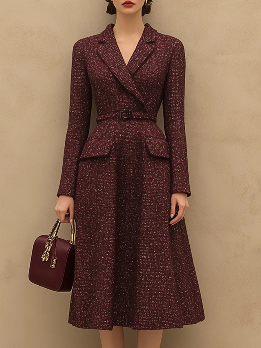 Our classic tweed dress adds a touch of vintage charm to your wardrobe. This stylish coat features an elegant and romantic V-neck design and a retro and classic Newlook style, making it the perfect choice for elegant women.